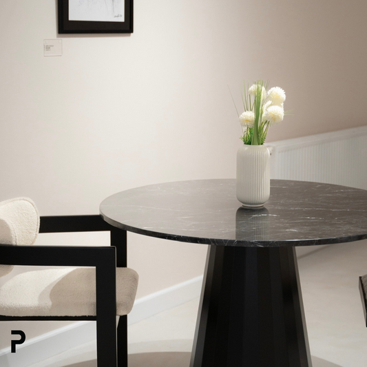 BASIC Circle Siyah Cone Beyaz Mermer Masa
