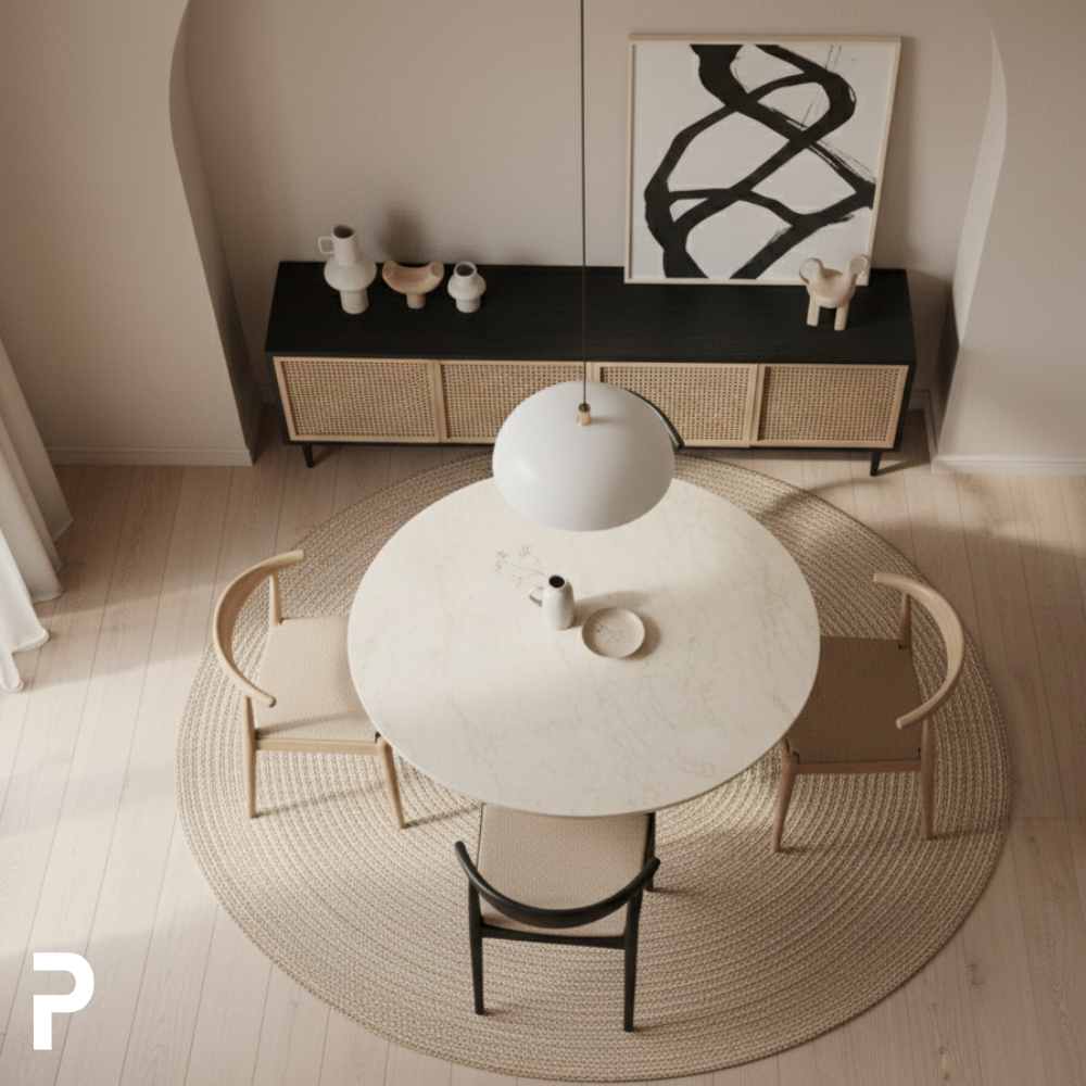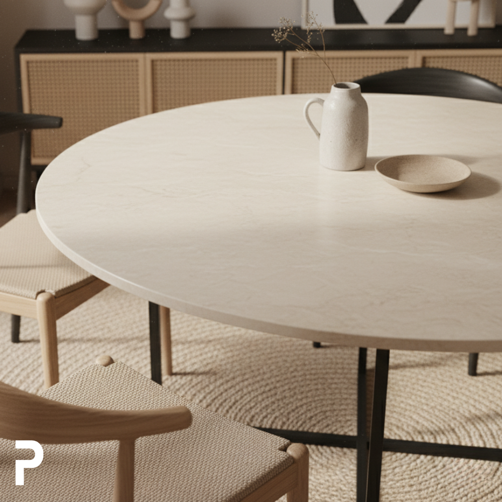 BASIC Circle Siyah TLEG Bej Mermer Masa