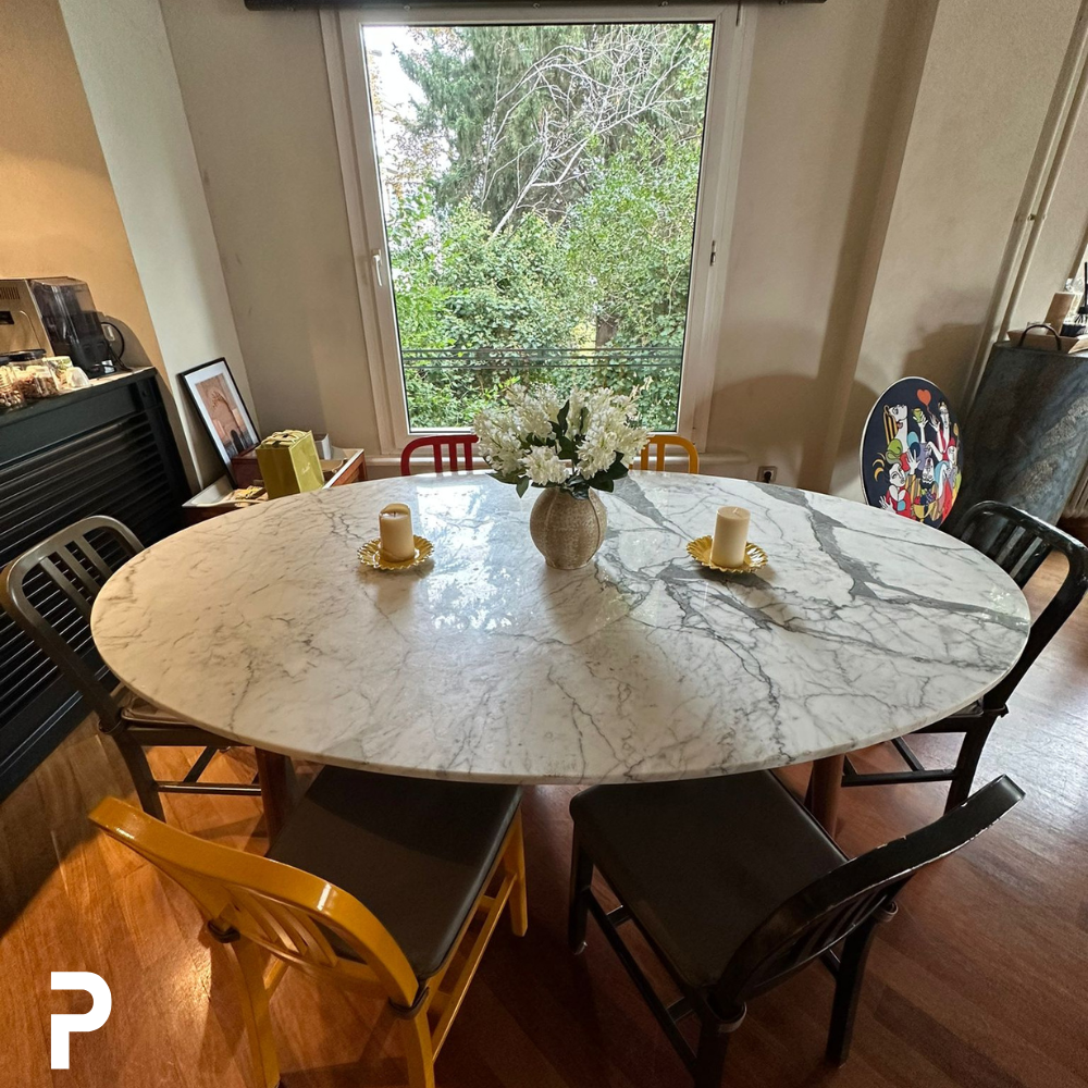 BASIC Oval Ahşap 4'lü Carrara Beyaz Mermer Masa