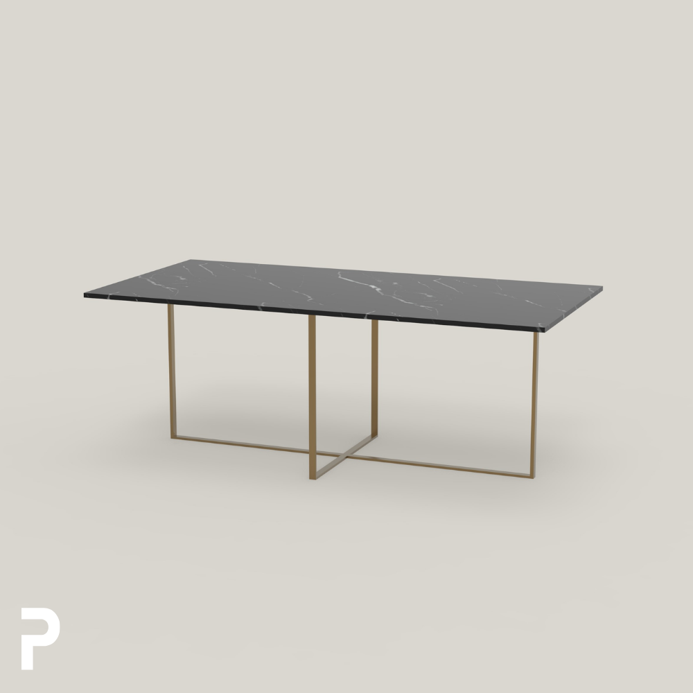 BASIC Rect Pirinç TLEG Siyah Mermer Masa