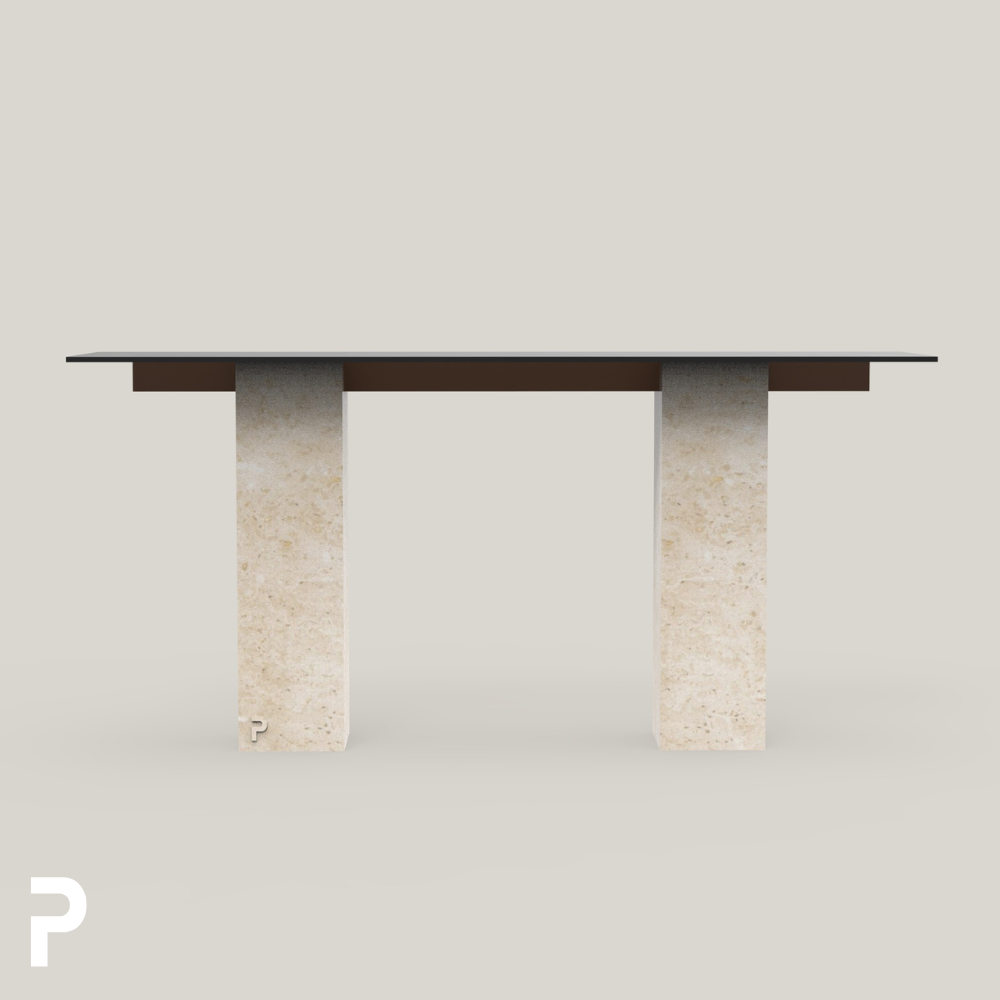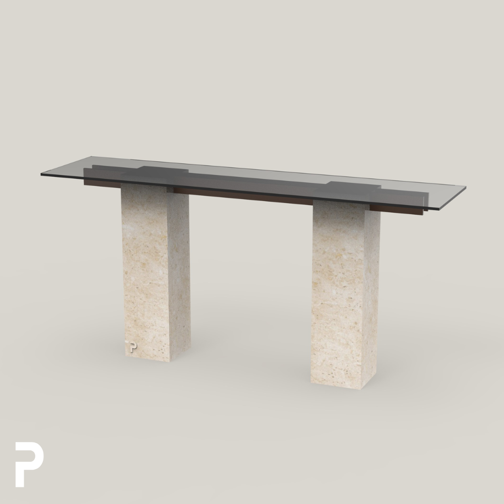 Trifecta Entree Dresuar, limra taşının doğal zarafetini, pirinç metalin sofistike dokusunu ve temperli camın modern şeffaflığını bir araya getirir. Üç malzemenin bu kusursuz dengesi, mekâna hem görsel hafiflik hem de üst düzey dayanıklılık kazandırır.