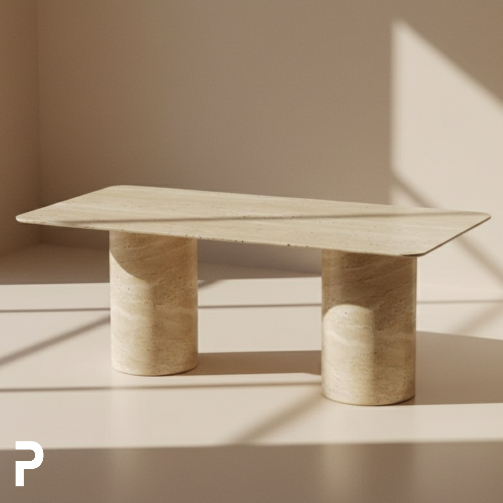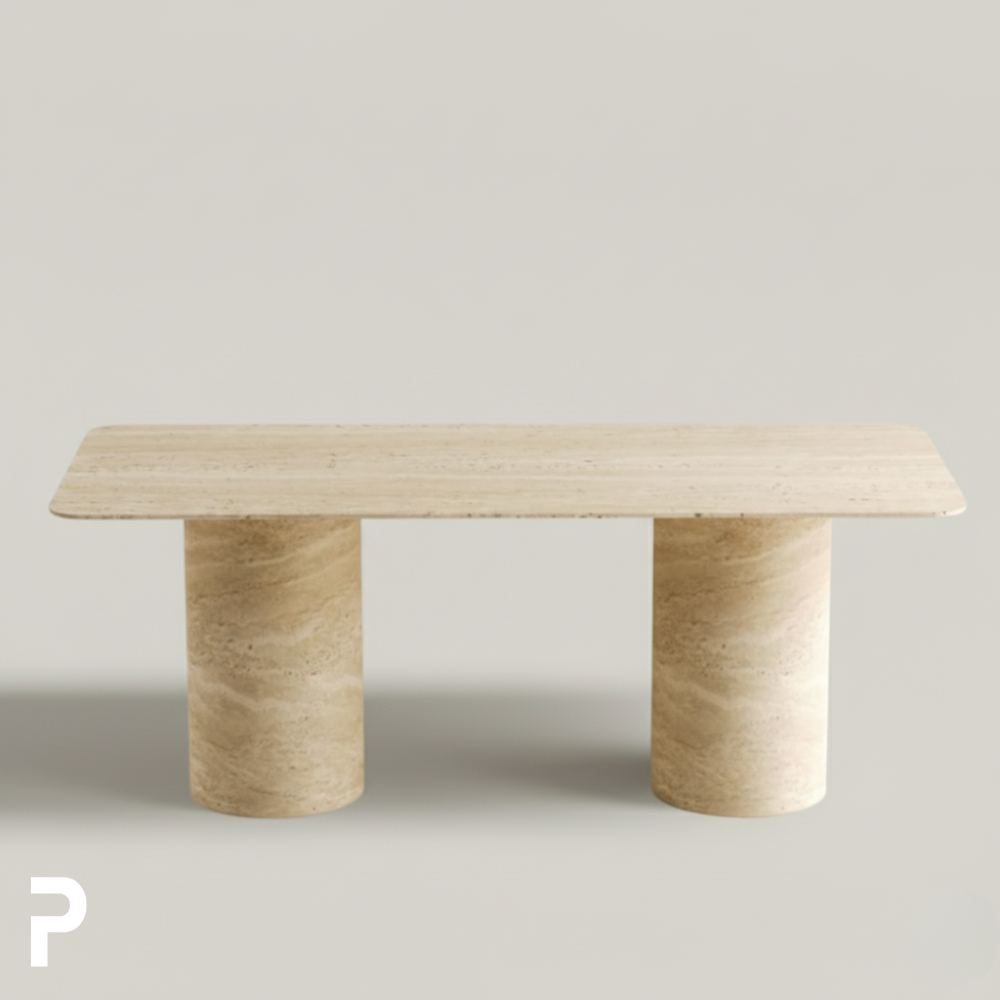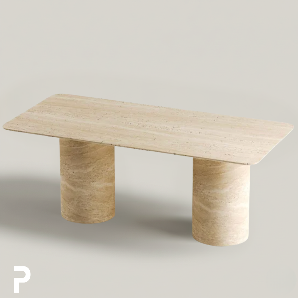 Mateo Rect Cylinder Traverten Yemek Masası: Doğal Travertenin Organik Zarafeti
