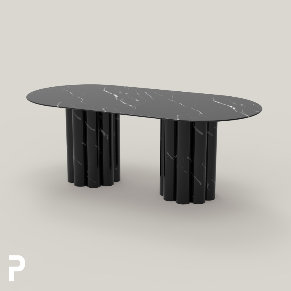Masanın ikonik ayakları, üstün taş işçiliğini yansıtan kusursuz detaylara sahiptir. Heykelsi formu ve dengeli taşıyıcı yapısı, hem güçlü bir duruş hem de zarif bir görünüm kazandırır.