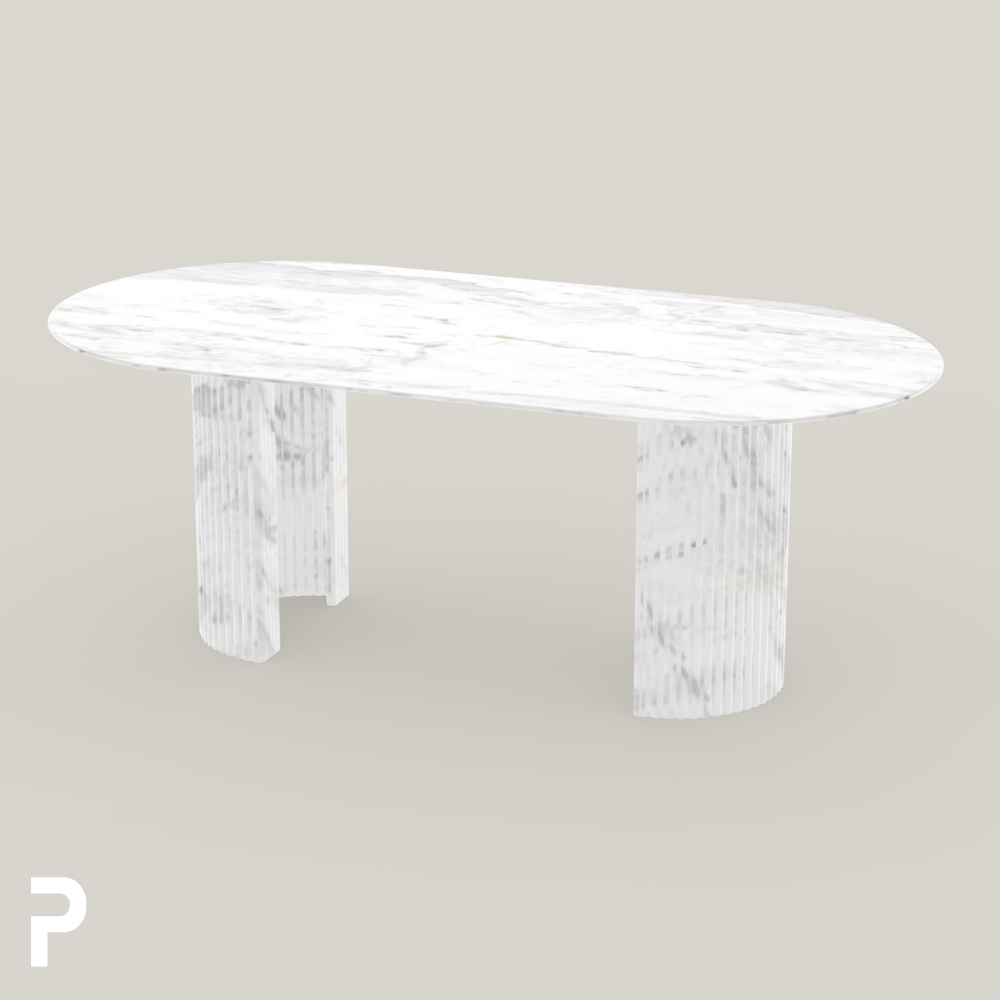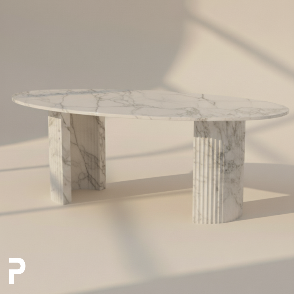 Mateo Cleg, tamamen %100 doğal Beyaz Carrara mermerden üretilmiştir. Her taşın damar yapısı, renk tonu ve dokusu birbirinden farklıdır; bu sayede her masa tek ve eşsiz bir sanat eseri olarak hayat bulur.