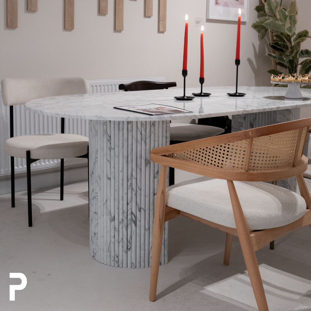 Mateo Cleg Beyaz Carrara Mermer Yemek Masası: %100 Mermerin Zarif Gücü